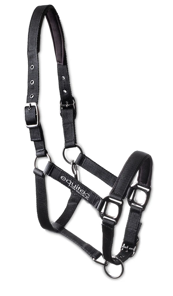 Nylon grime hvor der er blødt neopren over næsen og nakken for at få den bedst mulige komfort til din hest.