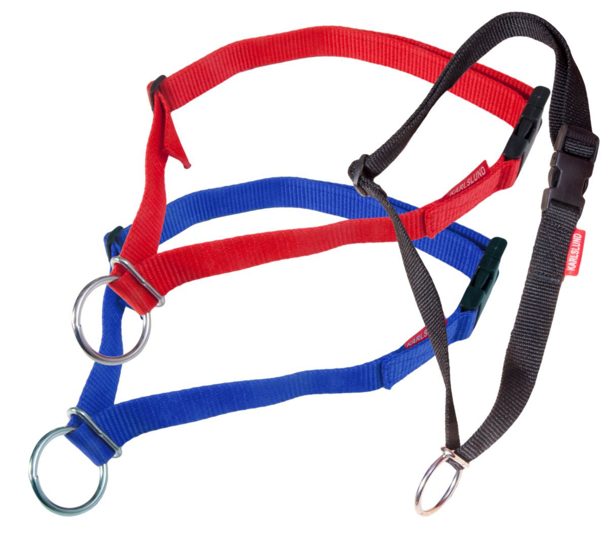 Simpel halsrem i nylon, med sikkerhedsspænde i plastic.God til f.eks. fodring og lignende.
