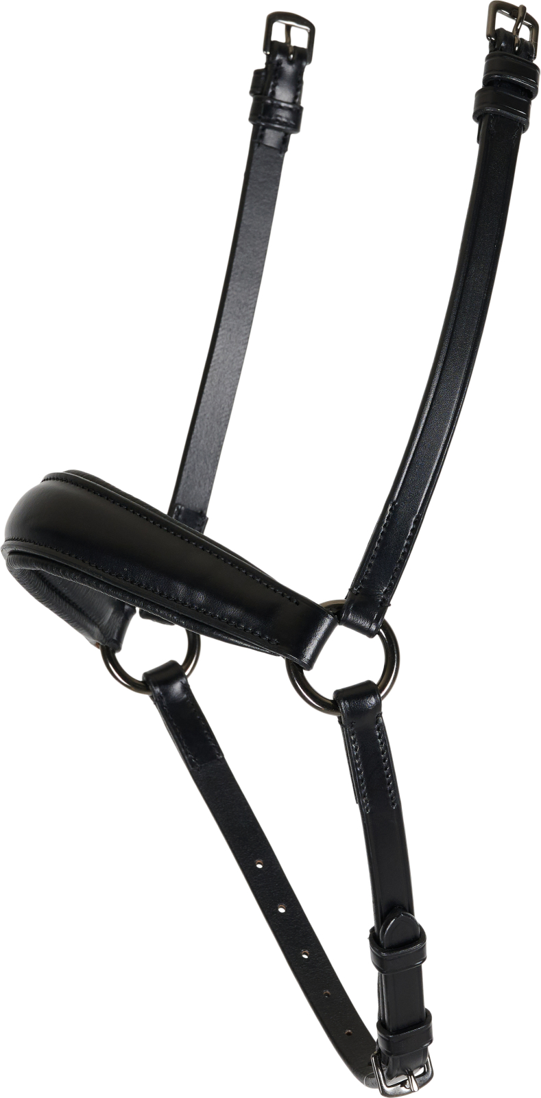 Dette fine Catago næsebånd er fremstillet af europæisk læder. Farven er sort og spænder er “gunmetal”.
