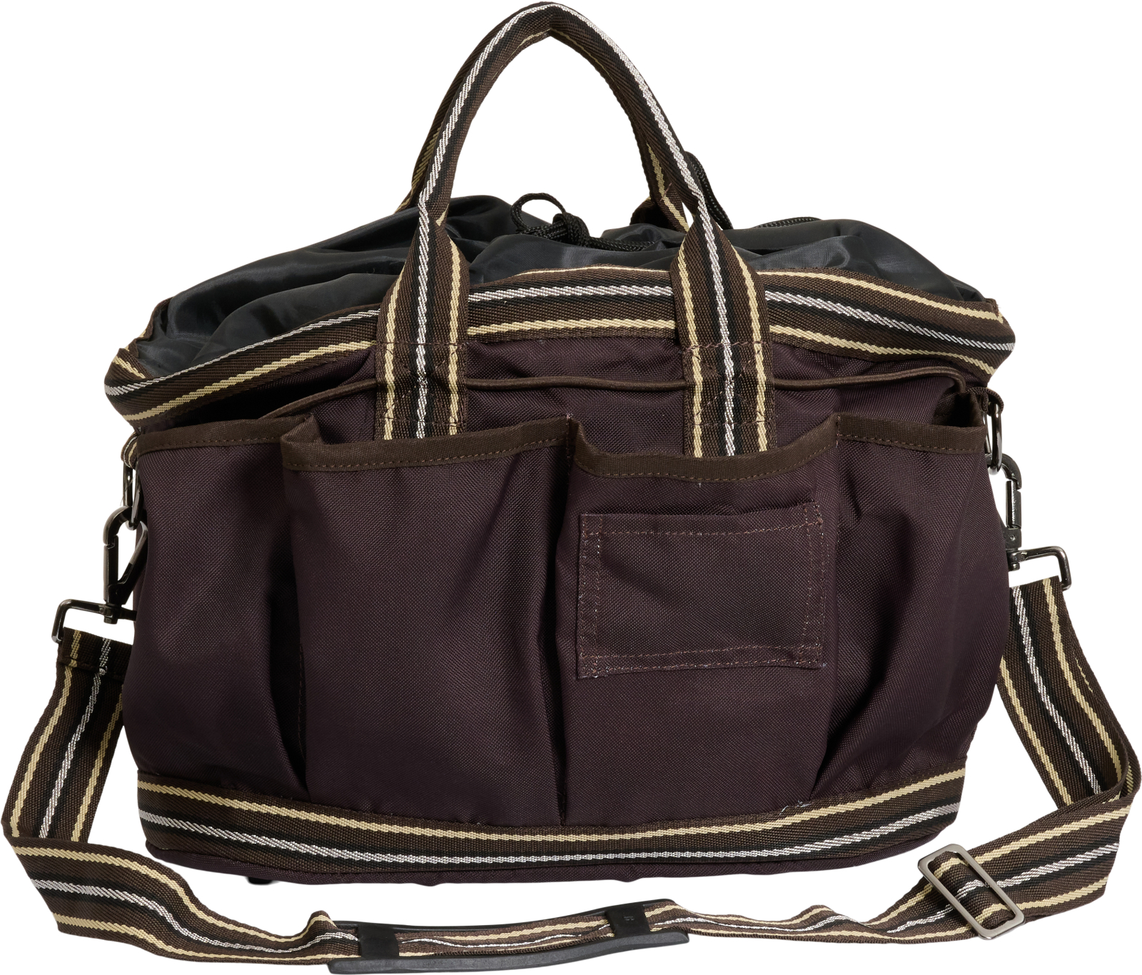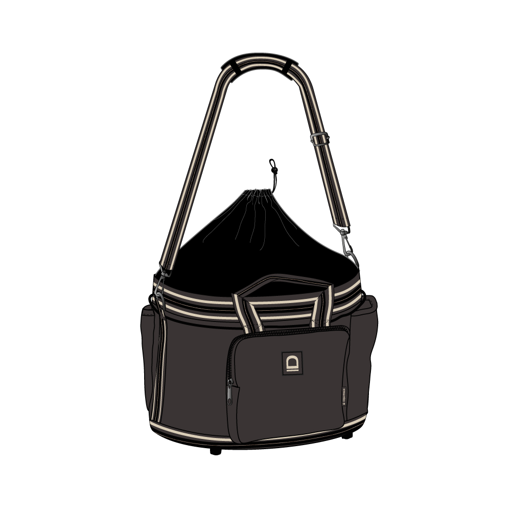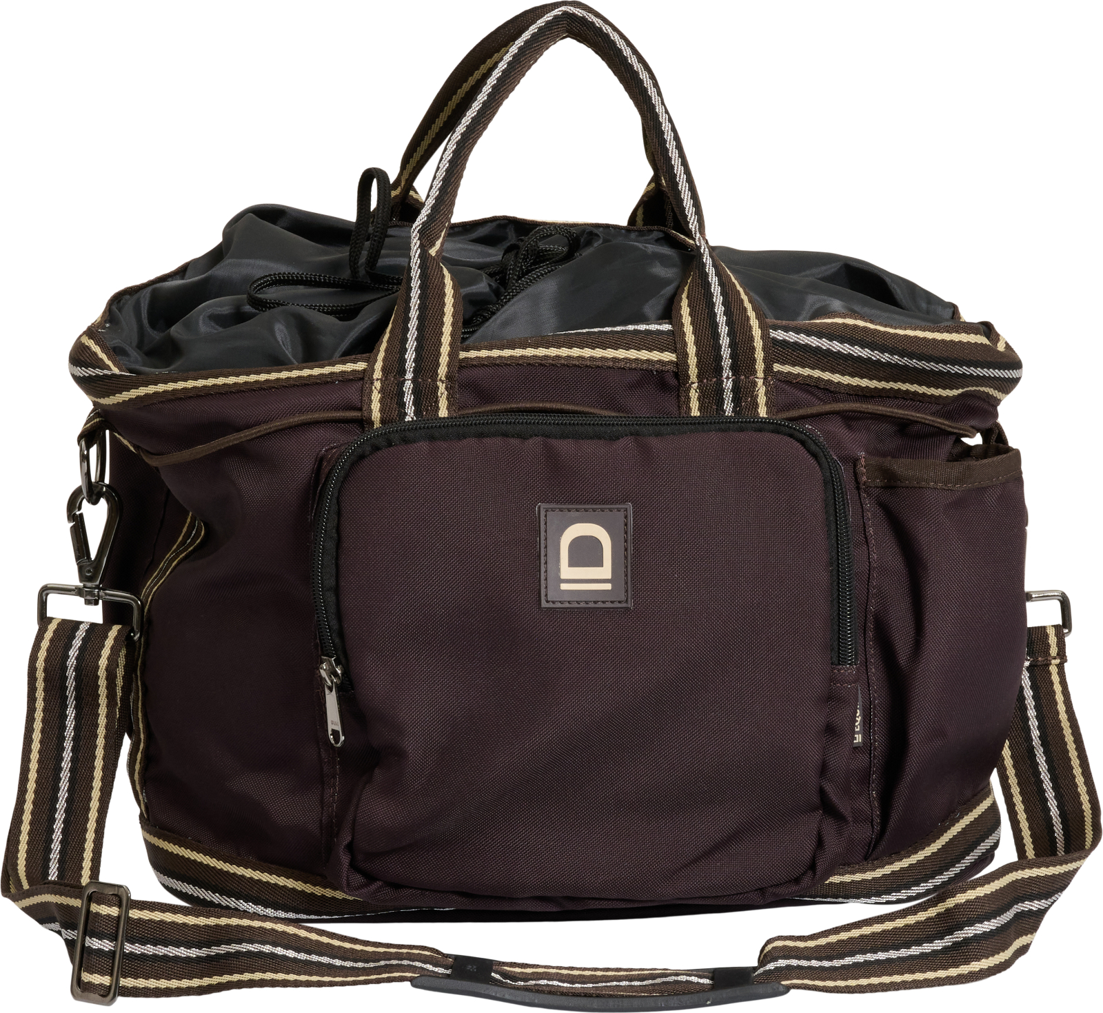 Equipage Darcy Strigletaske med 6 udvendige lommer, 1 med lynlås. Stort rum med indvendig lynlåslomme. Lukkes med blødt polyesterstof og snøre. Stribede webbinghåndtag og justerbar skulderrem.