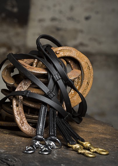 Blød tøjle i glat biothan med stoppere. Med karabiner der gør det nemt at tage tøjlen af og på. Vedligeholdelsesvenligt materiale, skal bare vaskes med vand.